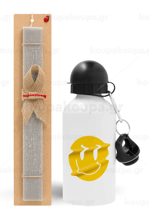 Smile avatar distrorted, Πασχαλινή Λαμπάδα με παγούρι μεταλλικό αλουμινίου (500ml) & κερί αρωματικό πλακέ (30cm) (ΓΚΡΙ)