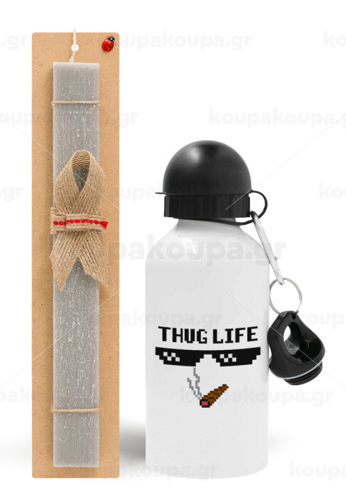 thug life, Πασχαλινή Λαμπάδα με παγούρι μεταλλικό αλουμινίου (500ml) & κερί αρωματικό πλακέ (30cm) (ΓΚΡΙ)