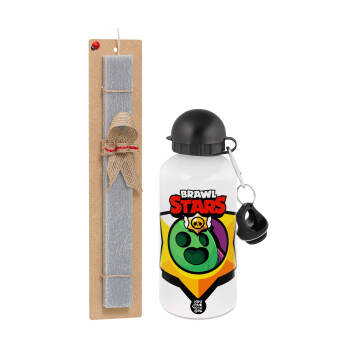 Brawl Stars Leon, Πασχαλινή Λαμπάδα με παγούρι μεταλλικό αλουμινίου (500ml) & κερί αρωματικό πλακέ (30cm) (ΓΚΡΙ)