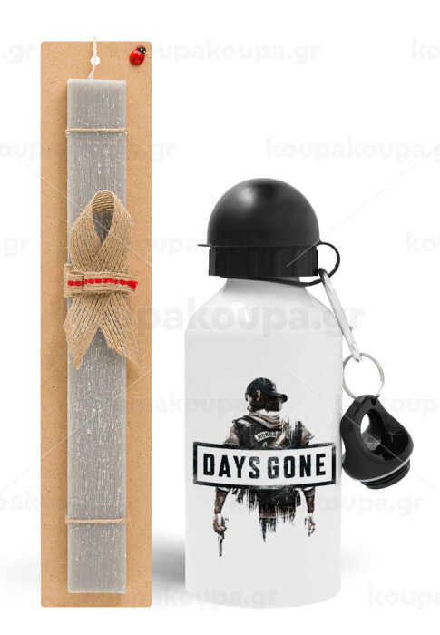 Day's Gone, Πασχαλινή Λαμπάδα με παγούρι μεταλλικό αλουμινίου (500ml) & κερί αρωματικό πλακέ (30cm) (ΓΚΡΙ)