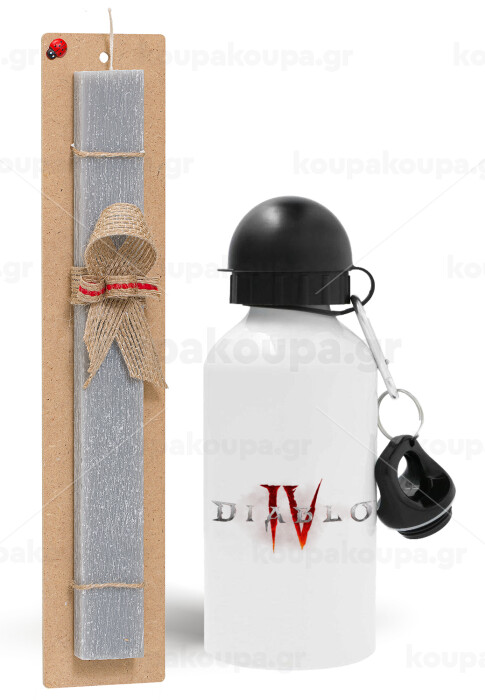 Diablo iv, Πασχαλινή Λαμπάδα με παγούρι μεταλλικό αλουμινίου (500ml) & κερί αρωματικό πλακέ (30cm) (ΓΚΡΙ)