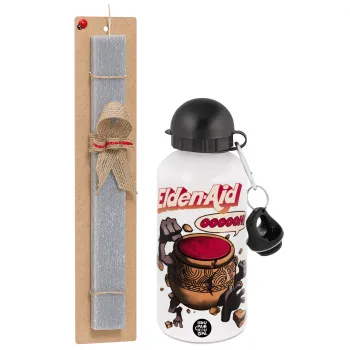Elden-Aid, Elden Ring inspired , Πασχαλινή Λαμπάδα με παγούρι μεταλλικό αλουμινίου (500ml) & κερί αρωματικό πλακέ (30cm) (ΓΚΡΙ)