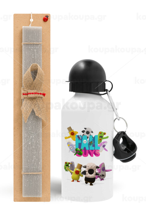FALL GUYS, Πασχαλινή Λαμπάδα με παγούρι μεταλλικό αλουμινίου (500ml) & κερί αρωματικό πλακέ (30cm) (ΓΚΡΙ)