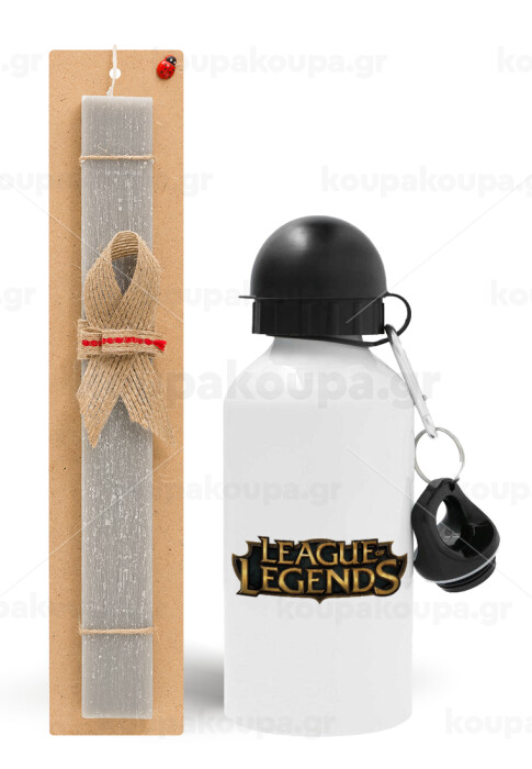 League of Legends LoL, Πασχαλινή Λαμπάδα με παγούρι μεταλλικό αλουμινίου (500ml) & κερί αρωματικό πλακέ (30cm) (ΓΚΡΙ)