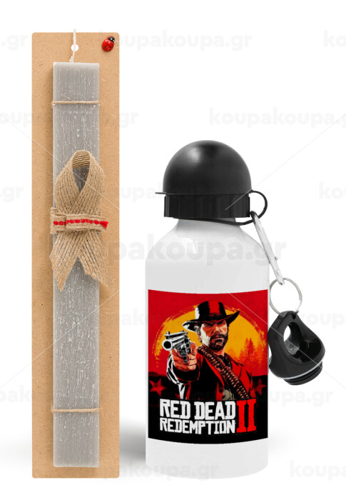 Red Dead Redemption 2, Πασχαλινή Λαμπάδα με παγούρι μεταλλικό αλουμινίου (500ml) & κερί αρωματικό πλακέ (30cm) (ΓΚΡΙ)