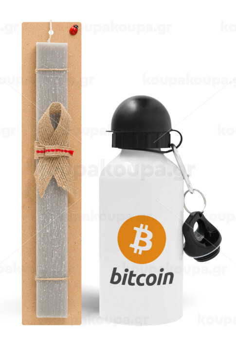 Bitcoin, Πασχαλινή Λαμπάδα με παγούρι μεταλλικό αλουμινίου (500ml) & κερί αρωματικό πλακέ (30cm) (ΓΚΡΙ)