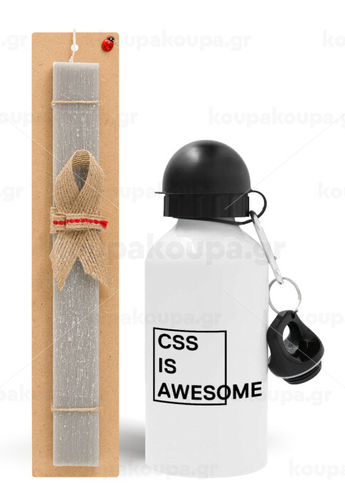 CSS is awesome, Πασχαλινή Λαμπάδα με παγούρι μεταλλικό αλουμινίου (500ml) & κερί αρωματικό πλακέ (30cm) (ΓΚΡΙ)