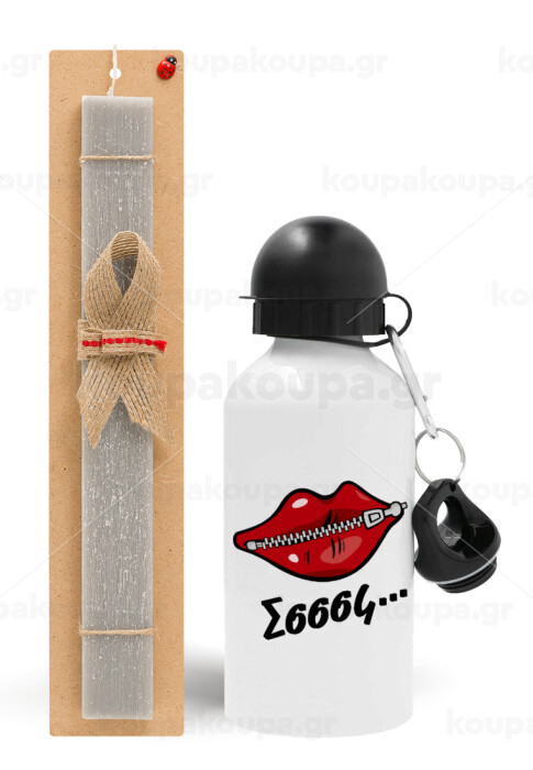 Σσσσς..., Πασχαλινή Λαμπάδα με παγούρι μεταλλικό αλουμινίου (500ml) & κερί αρωματικό πλακέ (30cm) (ΓΚΡΙ)
