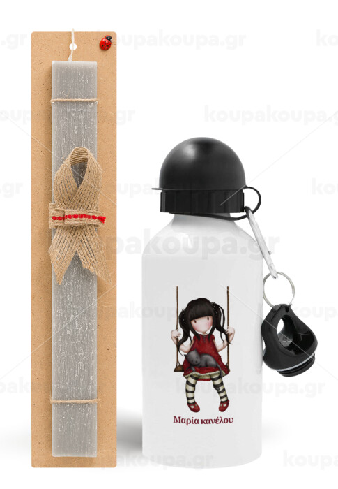 Santoro, Πασχαλινή Λαμπάδα με παγούρι μεταλλικό αλουμινίου (500ml) & κερί αρωματικό πλακέ (30cm) (ΓΚΡΙ)