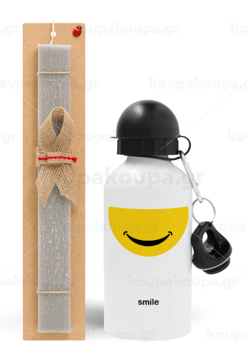 Smile Mug, Πασχαλινή Λαμπάδα με παγούρι μεταλλικό αλουμινίου (500ml) & κερί αρωματικό πλακέ (30cm) (ΓΚΡΙ)