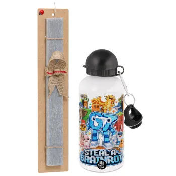 Steal a Brainrot Six Seven, Πασχαλινή Λαμπάδα με παγούρι μεταλλικό αλουμινίου (500ml) & κερί αρωματικό πλακέ (30cm) (ΓΚΡΙ)
