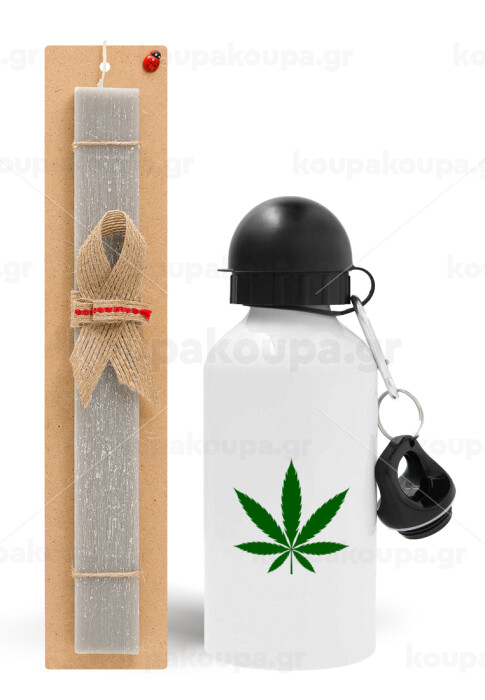 Weed, Πασχαλινή Λαμπάδα με παγούρι μεταλλικό αλουμινίου (500ml) & κερί αρωματικό πλακέ (30cm) (ΓΚΡΙ)