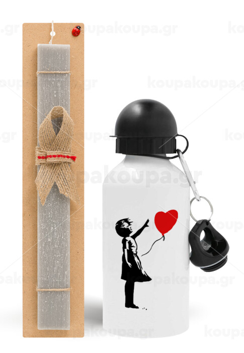 Banksy (Hope), Πασχαλινή Λαμπάδα με παγούρι μεταλλικό αλουμινίου (500ml) & κερί αρωματικό πλακέ (30cm) (ΓΚΡΙ)
