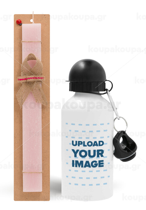 Το δικό σου σχέδιο, Πασχαλινή Λαμπάδα με παγούρι μεταλλικό αλουμινίου (500ml) & κερί αρωματικό πλακέ (30cm) (ΡΟΖ)