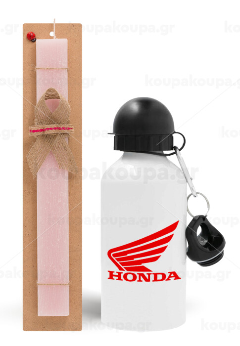 Honda, Πασχαλινή Λαμπάδα με παγούρι μεταλλικό αλουμινίου (500ml) & κερί αρωματικό πλακέ (30cm) (ΡΟΖ)