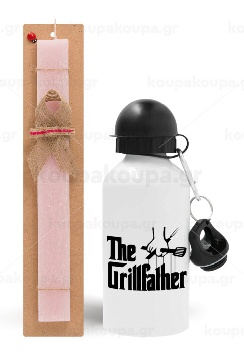The Grillfather, Πασχαλινή Λαμπάδα με παγούρι μεταλλικό αλουμινίου (500ml) & κερί αρωματικό πλακέ (30cm) (ΡΟΖ)