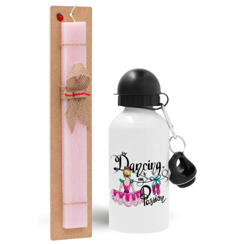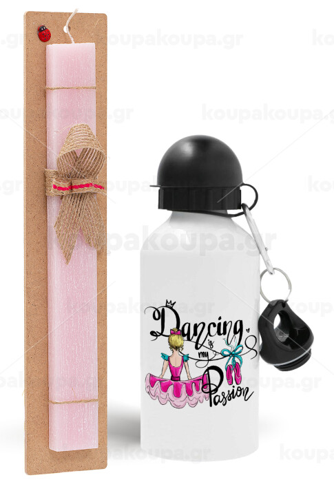Dancing is my Passion, Πασχαλινή Λαμπάδα με παγούρι μεταλλικό αλουμινίου (500ml) & κερί αρωματικό πλακέ (30cm) (ΡΟΖ)