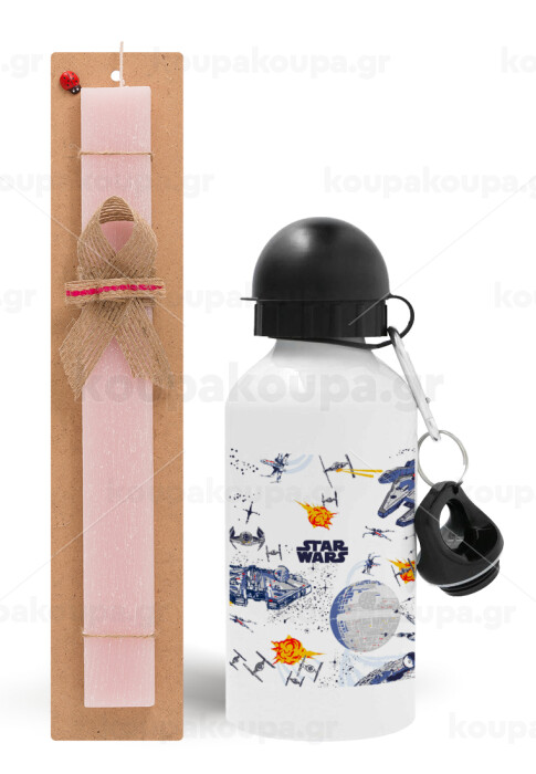 Ο πόλεμος των άστρων, Πασχαλινή Λαμπάδα με παγούρι μεταλλικό αλουμινίου (500ml) & κερί αρωματικό πλακέ (30cm) (ΡΟΖ)