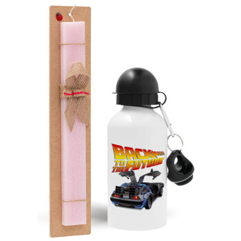 Back to the future, Πασχαλινή Λαμπάδα με παγούρι μεταλλικό αλουμινίου (500ml) & κερί αρωματικό πλακέ (30cm) (ΡΟΖ)