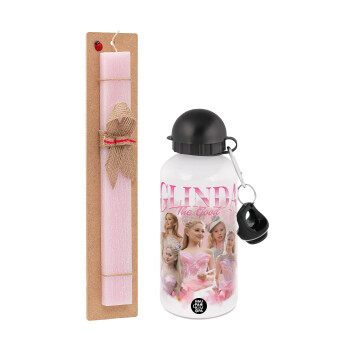 Escape to victory, Πασχαλινή Λαμπάδα με παγούρι μεταλλικό αλουμινίου (500ml) & κερί αρωματικό πλακέ (30cm) (ΡΟΖ)