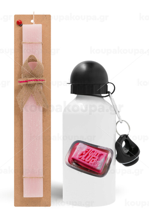 Fight Club, Πασχαλινή Λαμπάδα με παγούρι μεταλλικό αλουμινίου (500ml) & κερί αρωματικό πλακέ (30cm) (ΡΟΖ)