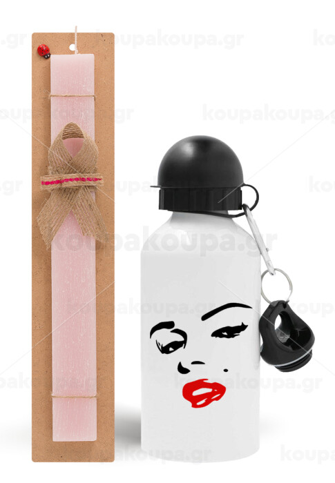 Marilyn Monroe, Πασχαλινή Λαμπάδα με παγούρι μεταλλικό αλουμινίου (500ml) & κερί αρωματικό πλακέ (30cm) (ΡΟΖ)