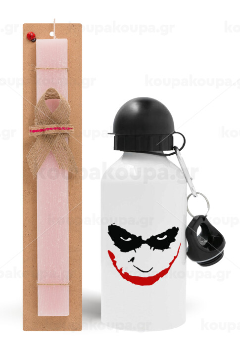 The joker smile, Πασχαλινή Λαμπάδα με παγούρι μεταλλικό αλουμινίου (500ml) & κερί αρωματικό πλακέ (30cm) (ΡΟΖ)