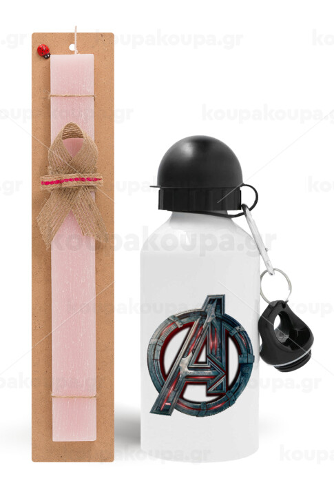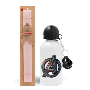 Avengers, Πασχαλινή Λαμπάδα με παγούρι μεταλλικό αλουμινίου (500ml) & κερί αρωματικό πλακέ (30cm) (ΡΟΖ)