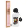 Minions Let's fight with kung fu sounds, Πασχαλινή Λαμπάδα με παγούρι μεταλλικό αλουμινίου (500ml) & κερί αρωματικό πλακέ (30cm) (ΡΟΖ)