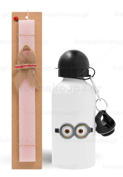 Minions, Πασχαλινή Λαμπάδα με παγούρι μεταλλικό αλουμινίου (500ml) & κερί αρωματικό πλακέ (30cm) (ΡΟΖ)