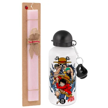 One Piece, Πασχαλινή Λαμπάδα με παγούρι μεταλλικό αλουμινίου (500ml) & κερί αρωματικό πλακέ (30cm) (ΡΟΖ)