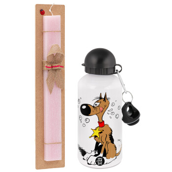 Rantanplan (Ρανταπλάν), Πασχαλινή Λαμπάδα με παγούρι μεταλλικό αλουμινίου (500ml) & κερί αρωματικό πλακέ (30cm) (ΡΟΖ)