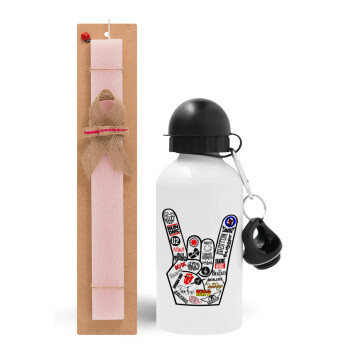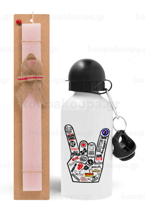 Best Rock Bands hand, Πασχαλινή Λαμπάδα με παγούρι μεταλλικό αλουμινίου (500ml) & κερί αρωματικό πλακέ (30cm) (ΡΟΖ)