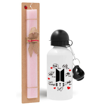 BTS signs, Πασχαλινή Λαμπάδα με παγούρι μεταλλικό αλουμινίου (500ml) & κερί αρωματικό πλακέ (30cm) (ΡΟΖ)