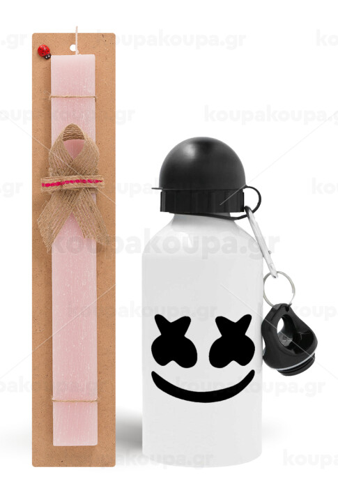 Marshmello, Πασχαλινή Λαμπάδα με παγούρι μεταλλικό αλουμινίου (500ml) & κερί αρωματικό πλακέ (30cm) (ΡΟΖ)