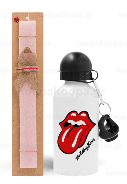 The rolling stones, Πασχαλινή Λαμπάδα με παγούρι μεταλλικό αλουμινίου (500ml) & κερί αρωματικό πλακέ (30cm) (ΡΟΖ)