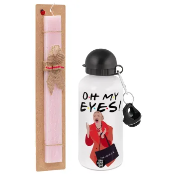 Friends,. oh my eyes Phoebe, Πασχαλινή Λαμπάδα με παγούρι μεταλλικό αλουμινίου (500ml) & κερί αρωματικό πλακέ (30cm) (ΡΟΖ)