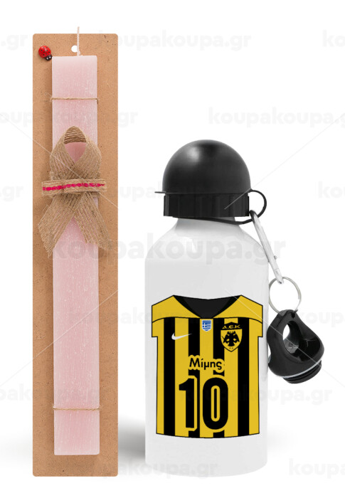 ΑΕΚ εμφάνιση, Πασχαλινή Λαμπάδα με παγούρι μεταλλικό αλουμινίου (500ml) & κερί αρωματικό πλακέ (30cm) (ΡΟΖ)