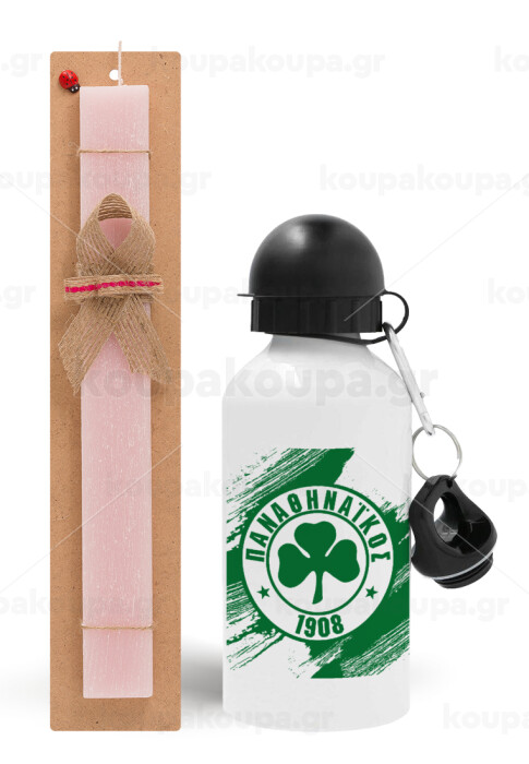 Π.Α.Ο., Πασχαλινή Λαμπάδα με παγούρι μεταλλικό αλουμινίου (500ml) & κερί αρωματικό πλακέ (30cm) (ΡΟΖ)