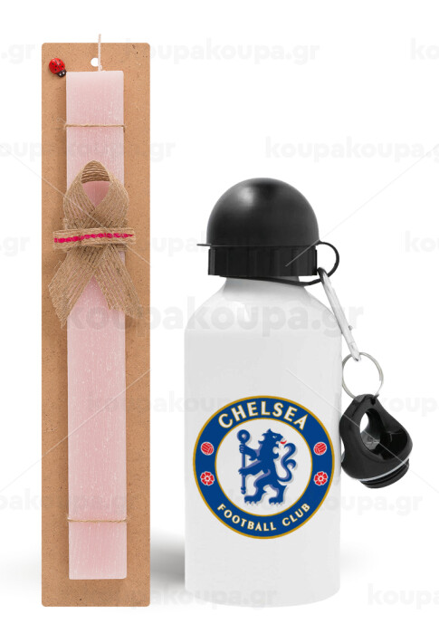 FC Chelsea, Πασχαλινή Λαμπάδα με παγούρι μεταλλικό αλουμινίου (500ml) & κερί αρωματικό πλακέ (30cm) (ΡΟΖ)