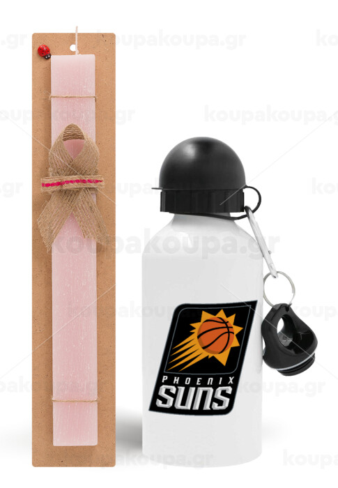 Phoenix Suns, Πασχαλινή Λαμπάδα με παγούρι μεταλλικό αλουμινίου (500ml) & κερί αρωματικό πλακέ (30cm) (ΡΟΖ)
