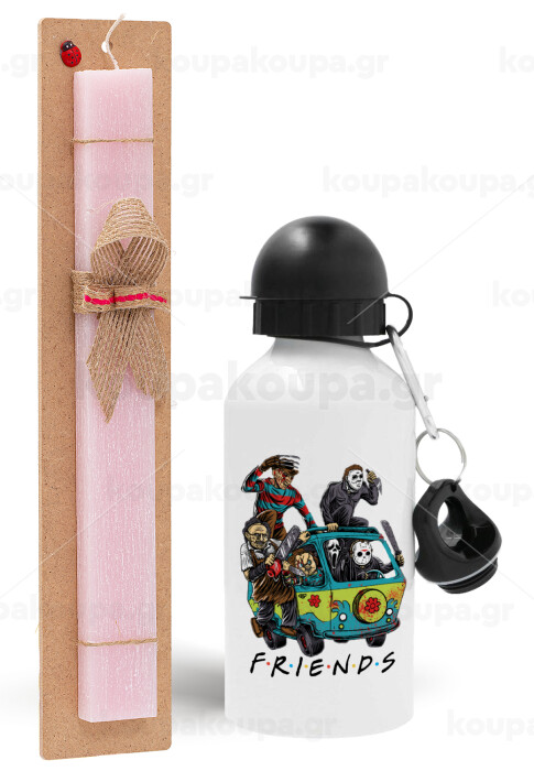 Halloween Friends Scooby Doo, Πασχαλινή Λαμπάδα με παγούρι μεταλλικό αλουμινίου (500ml) & κερί αρωματικό πλακέ (30cm) (ΡΟΖ)