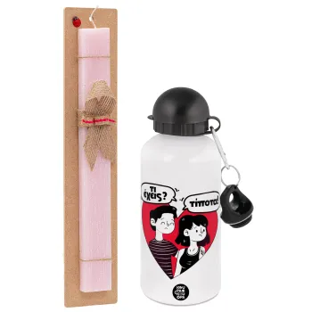 Τι έχεις? Τίποτα!, Πασχαλινή Λαμπάδα με παγούρι μεταλλικό αλουμινίου (500ml) & κερί αρωματικό πλακέ (30cm) (ΡΟΖ)