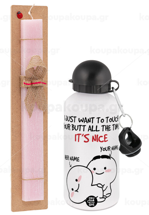 I Just Want To Touch Your Butt All The Time, Πασχαλινή Λαμπάδα με παγούρι μεταλλικό αλουμινίου (500ml) & κερί αρωματικό πλακέ (30cm) (ΡΟΖ)
