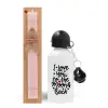 I love you to the moon and back with hearts, Πασχαλινή Λαμπάδα με παγούρι μεταλλικό αλουμινίου (500ml) & κερί αρωματικό πλακέ (30cm) (ΡΟΖ)