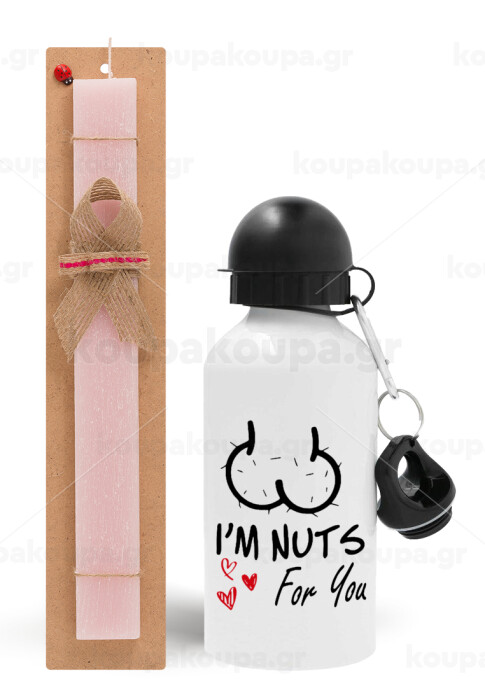 I'm Nuts for you, Πασχαλινή Λαμπάδα με παγούρι μεταλλικό αλουμινίου (500ml) & κερί αρωματικό πλακέ (30cm) (ΡΟΖ)