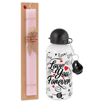Love You Forever, Πασχαλινή Λαμπάδα με παγούρι μεταλλικό αλουμινίου (500ml) & κερί αρωματικό πλακέ (30cm) (ΡΟΖ)