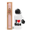 I Love 80s, Πασχαλινή Λαμπάδα με παγούρι μεταλλικό αλουμινίου (500ml) & κερί αρωματικό πλακέ (30cm) (ΡΟΖ)