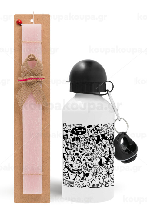 Σκυλάκια, Πασχαλινή Λαμπάδα με παγούρι μεταλλικό αλουμινίου (500ml) & κερί αρωματικό πλακέ (30cm) (ΡΟΖ)