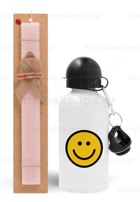 Smile classic, Πασχαλινή Λαμπάδα με παγούρι μεταλλικό αλουμινίου (500ml) & κερί αρωματικό πλακέ (30cm) (ΡΟΖ)